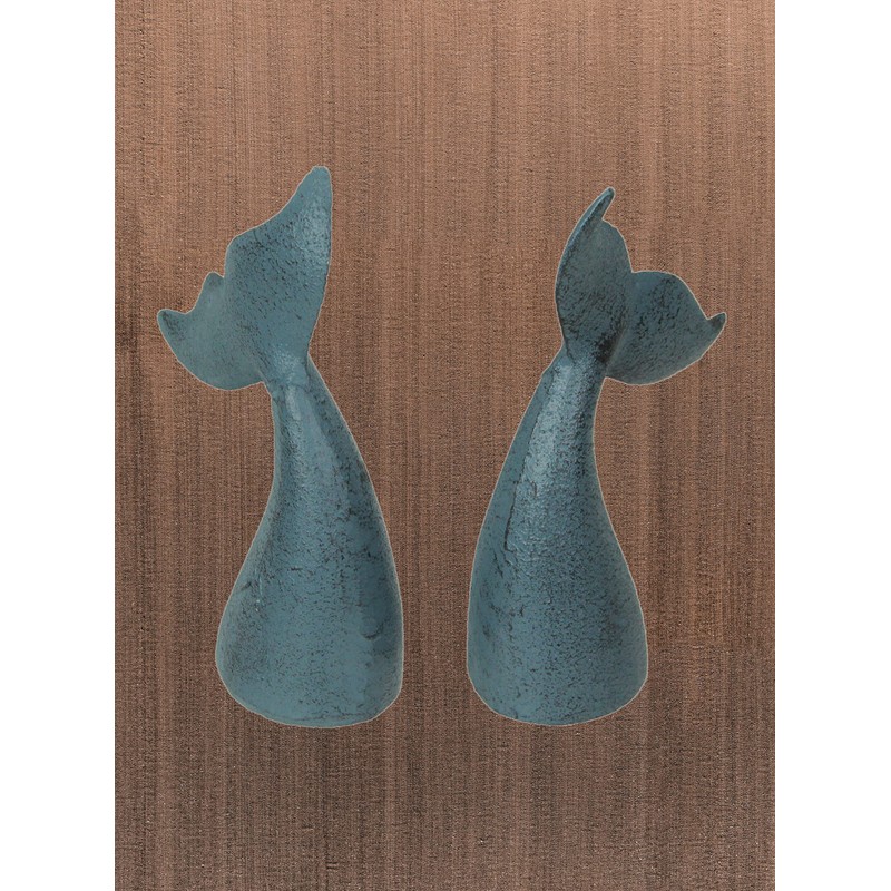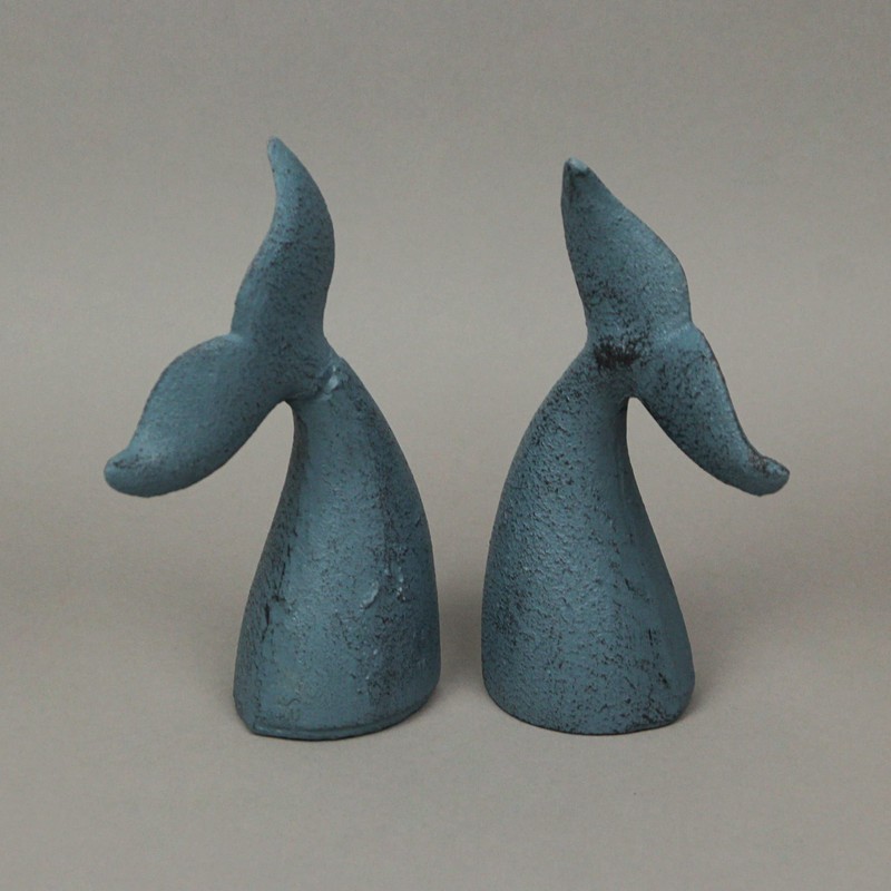 Dive into nautical charm with our whale tail decorative bookends. Crafted from durable cast iron, these bookends are designed to endure, adding a touch of coastal elegance to your home decor. The rustic blue finish gives them an appealing weathered look, making them a perfect fit for any style. With dimensions of 4 inches long, 1.5 inches wide, and 6.5 inches high, these versatile whale tails aren't just for books—they make exquisite decorative sculptures on end tables and countertops. Embrace their industrial charm by showcasing them on rustic shelves, or let them add a coastal vibe to your bookshelf organization. These bookends serve as both functional accents and artistic pieces, bringing a beachy feel to your beach house, bedroom, living room, kitchen, or study. Their subtle yet impactful presence elevates the ambiance, making them a delightful addition to your home. Whether you're an ocean enthusiast or simply seeking unique decor, these whale tail bookends will make a stylish splash in any room.