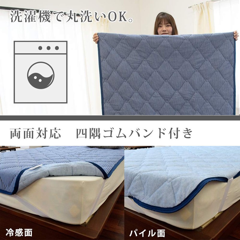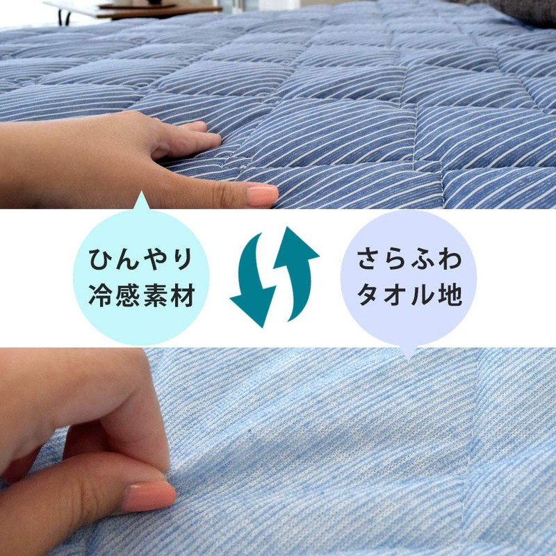 - A delightful set of 2. Reversible cool fabric and terry cloth for year-round use. A long-established bedding manufacturer Nishikawa, Tokyo. Safe for those who often turn in tossing and turning. Four corners have rubber bands to prevent the pad from slipping. Can be used on either side or side of the headset. Easy to install and remove, can be used on both futon and bed mattresses. Even if you sweat a lot, you can rest assured that Machine washable so you can easily wash it at home and keep it clean