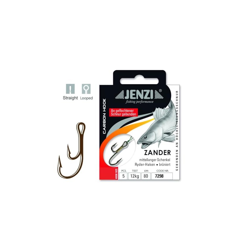 • Bonded high-carbon hooks burnished to high-performance cord, chemically sharpened. The Jenzi success program.
