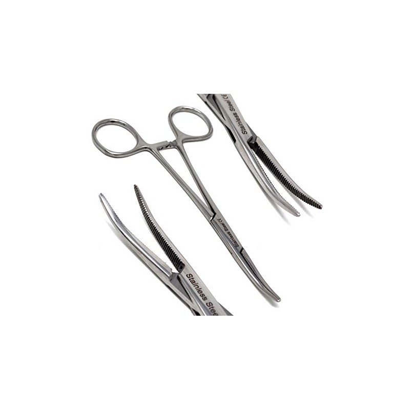 Set of 2 pcs Fish Hook Removing Ratcheted Locking Hemostat Forceps Pliers Straight & Curved, 5.5" (14cm), Stainless Steel
