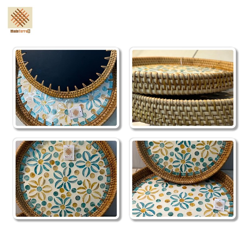 • Eco Friendly: The serving trays are made of natural rattan, wood, and mother of pearl. Our organic materials are the finest, they are eco-friendly, non-toxic, and sturdy.