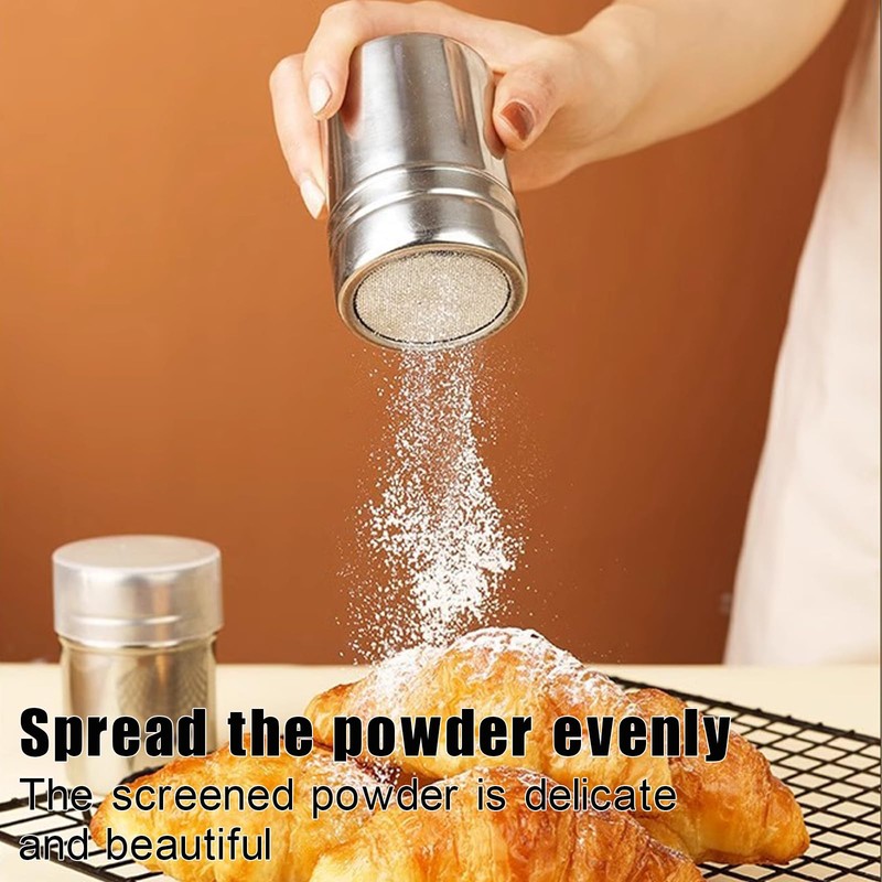- MULTI-FUNCTIONAL APPLICATION Ideal dispensing of powdered sugar, cocoa powder and flour. Whether as a icing sugar mill, cocoa shaker or dusting sugar shaker - practical and universally applicable.