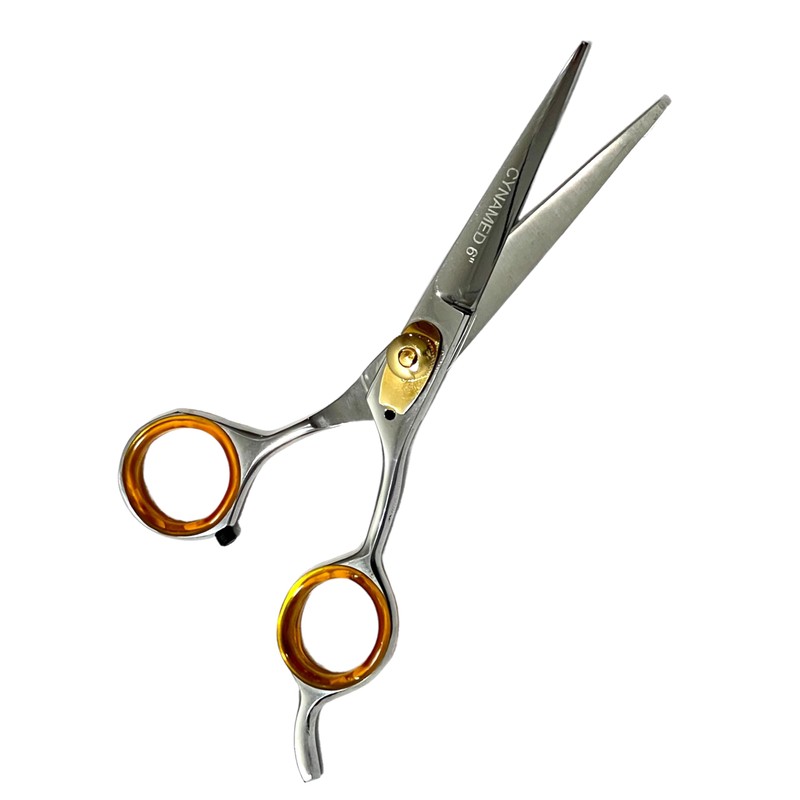 - Set of 2 Each - Silver Barber Scissors OR Shears With Gold Accent, Rubber Inner Rings, and Screw-On Finger Rests OR Fixed Finger Rests - Offered in 6 Inches, 6.5 Inches, or 6 + 6.5 Inches (Choose From The Shown Options )