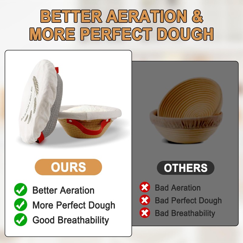 - BREATHABLE & FRESH DESIGN Excellent breathable design, these proofing baskets are handmade with high quality cotton rope, which allows air flow to wick away excess moisture and effectively maintain the ideal fermentation state to ferment the bread perfectly. These fermentation baskets do not produce sawdust and are easy to clean and maintain