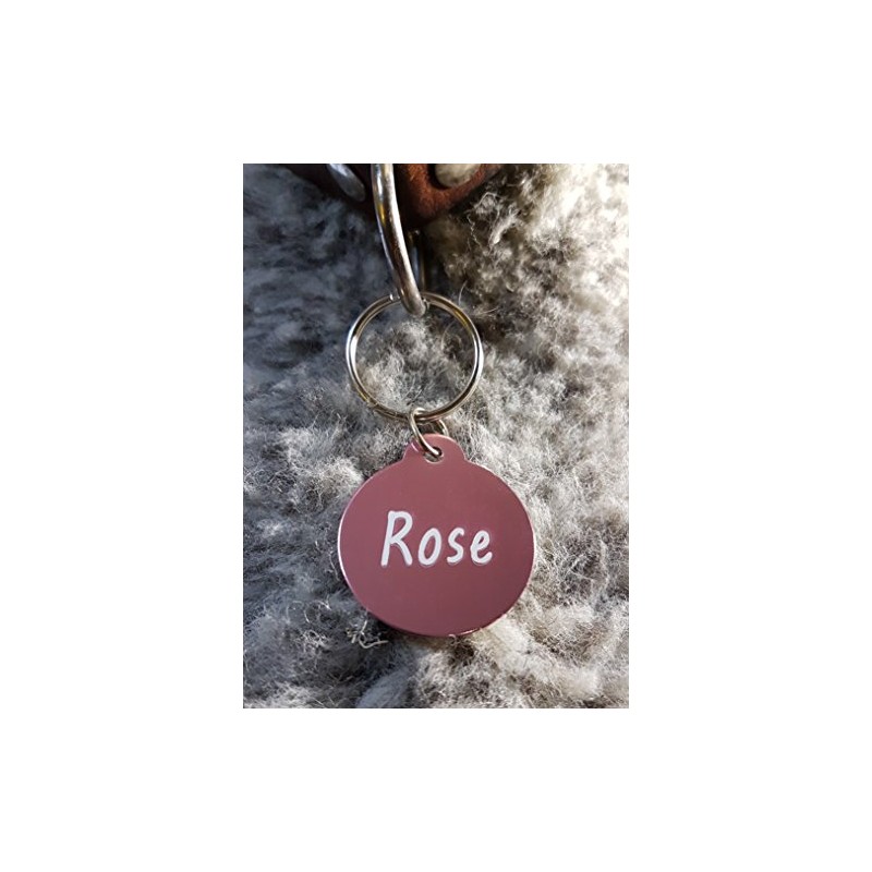 Set of 2 Round Dog Tag Identification Tag Made of Aluminium With Laser Engraving, Dog Tag, rose