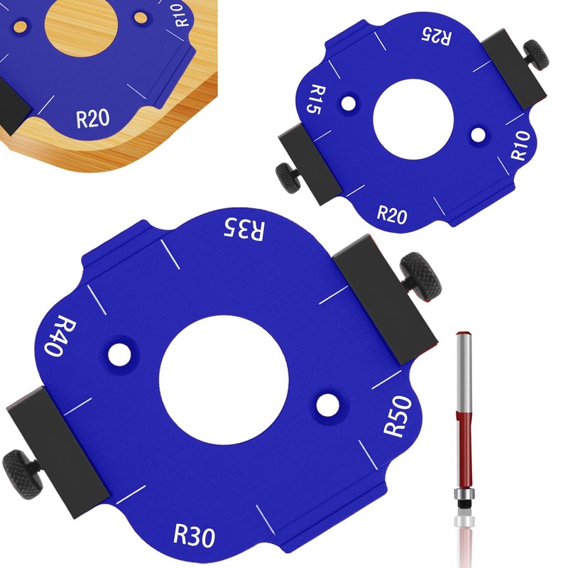 Set of 2 Router Jig Radius Template R10-R50 with Trimming Blade, Router Template for Milling Table, for Woodworking Tools (Blue)