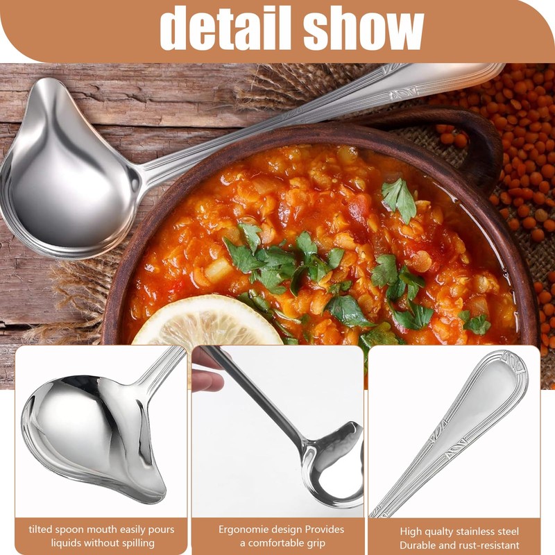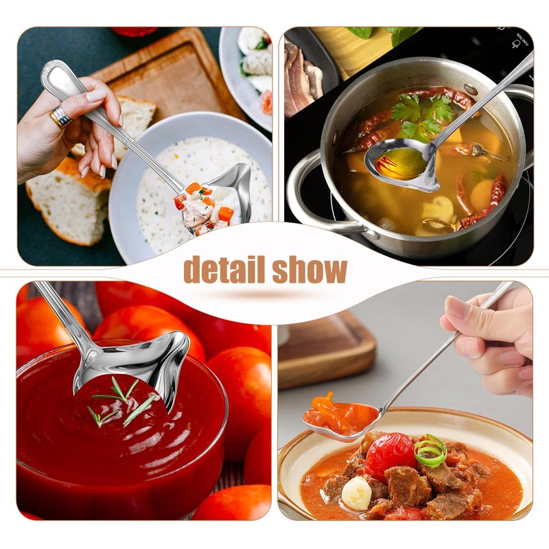 - Easy to use: the enlarged and wider spoon surface makes it easier to safely transfer soups or sauces from the pot to the bowl. Small sauce ladle can pour sauces precisely without spilling them.