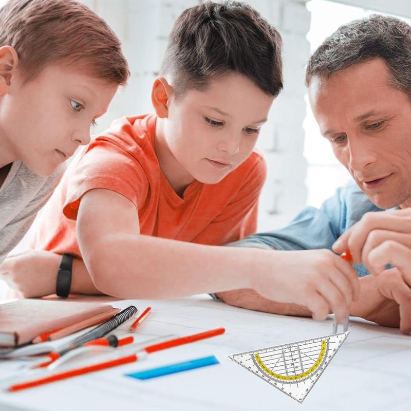 The set of 2 set square primary school offers you the perfect combination of precision and comfort for everyday school and office life. With a size of 15 cm, this small set square fits perfectly in any pencil case and is specially developed for students and teachers. Thanks to the transparent surface, you can read accurate lines and angles without problems and make precise drawings. This set square set is not only perfect for mathematics lessons or technical drawings, but also for everyday tasks in the office. Whether you measure angles or draw lines - with the geometric triangle you always achieve an exact result. Product features: set of 2 geo triangles, each 15 cm tall. Shatterproof and flexible plastic material. Transparent surface for precise work. Ideal for students, teachers, office workers and creative work. Perfect for primary school, secondary schools and everyday use. With this set square with handle, you can be sure that it meets all the requirements for a high-quality ruler set. Whether at school, in the office or at home, this set square is an indispensable tool for precise work and impresses with its high durability.