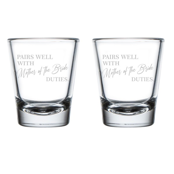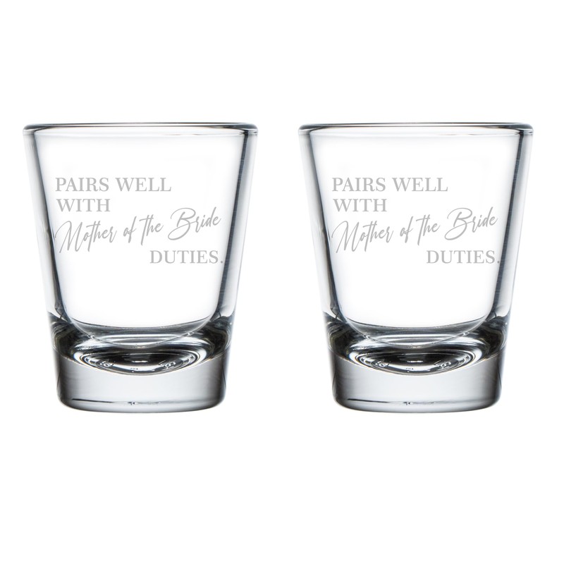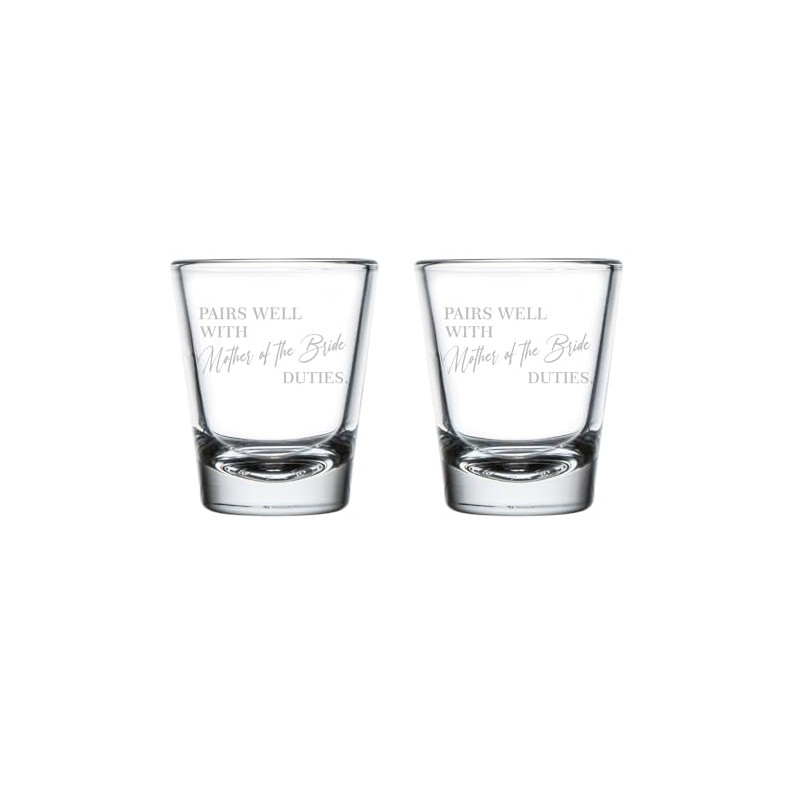 Set of 2 Shot Glasses 1.75oz Shot Glass Pairs Well With Mother Of The Bride Duties Mother Of The Bride