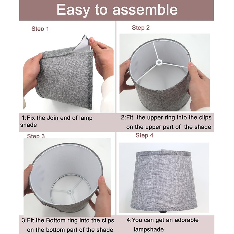 Easy Assembly:Our lampshades are packaged in a rolled-up form for safe delivery. Just attach the wire ring to the upper and lower clips, a quick 2-3 minute process.