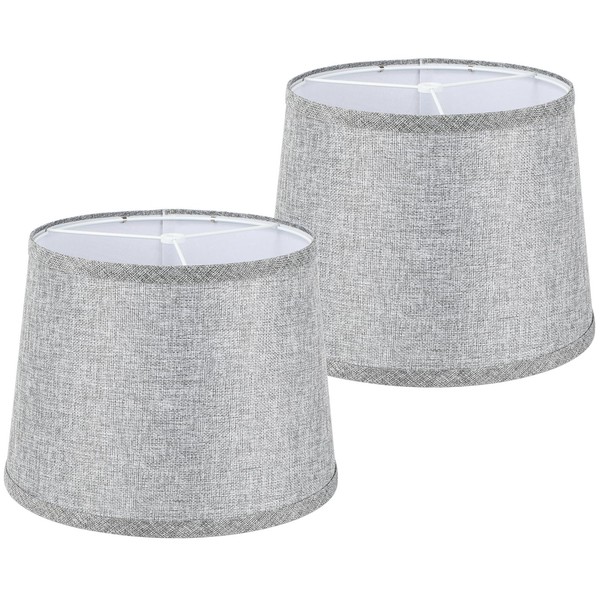 Set of 2 Small lampshades 10 inch for Table lamps and Nightstand Lamps,Assembly Required,Small Empire lamp shade Spider Fitter, Handcrafted Natural Linen lamp shades (8"x10"x8", Grey)