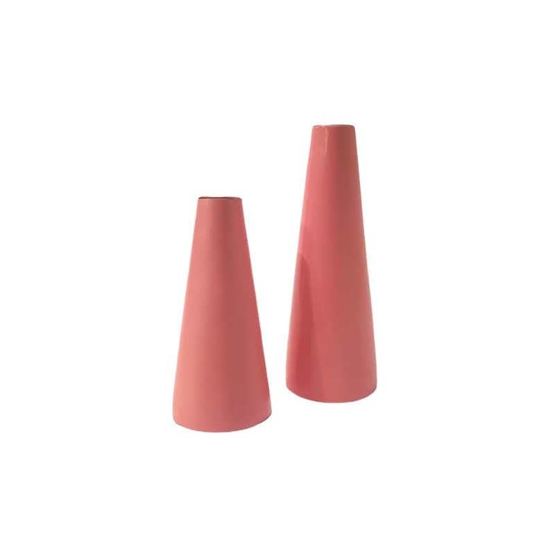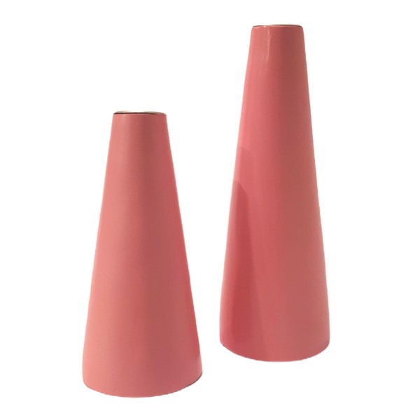 Set of 2 Tealight Holders in Pink Lacquered Wood (d. 6.5 cm x h. 14.5 cm - d. 7 cm x h. 20 cm)