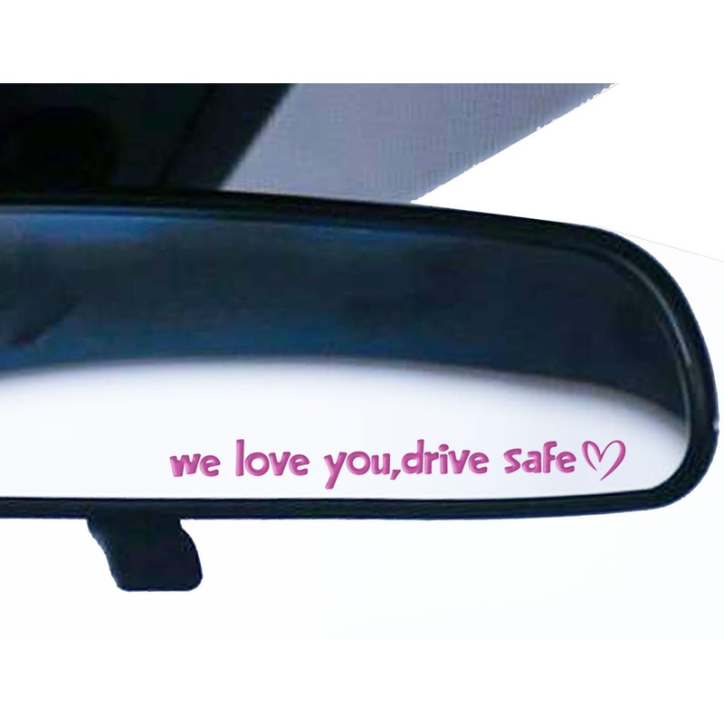 Set of 2 "We Love You, Drive Safe" Multi-Surface Decals | 10cm Width Crystal-like Stickers | Car Rearview Mirror Decals | Car Vinyl Decals | Personalized Car Décor (Pink)
