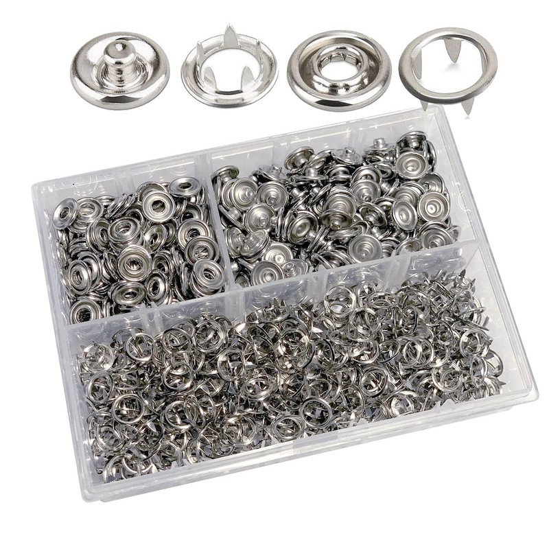 Set of 200 10 mm Press Studs, Silver Metal Press Studs, Sewing Free Buttons, Hollow Fixed Buttons, Tool Prong Buckle, Cam Snaps for DIY Crafts, Baby, Children, Jersey Fabric, Clothing Bags