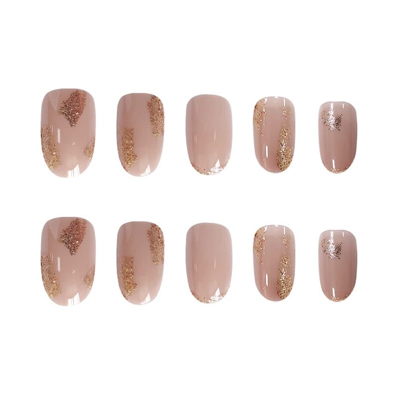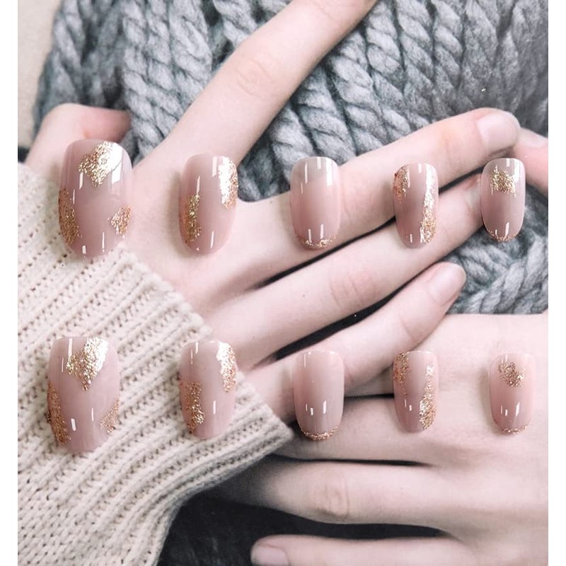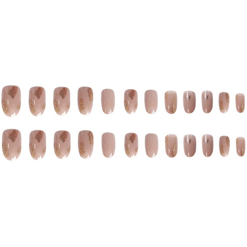 Set of 24 Nail Tips, Elegant and Elegant Nails, Medium Length Fake Nails, Gold Foil for Photo Taking Pictures, Weddings, Parties, After-parties, etc