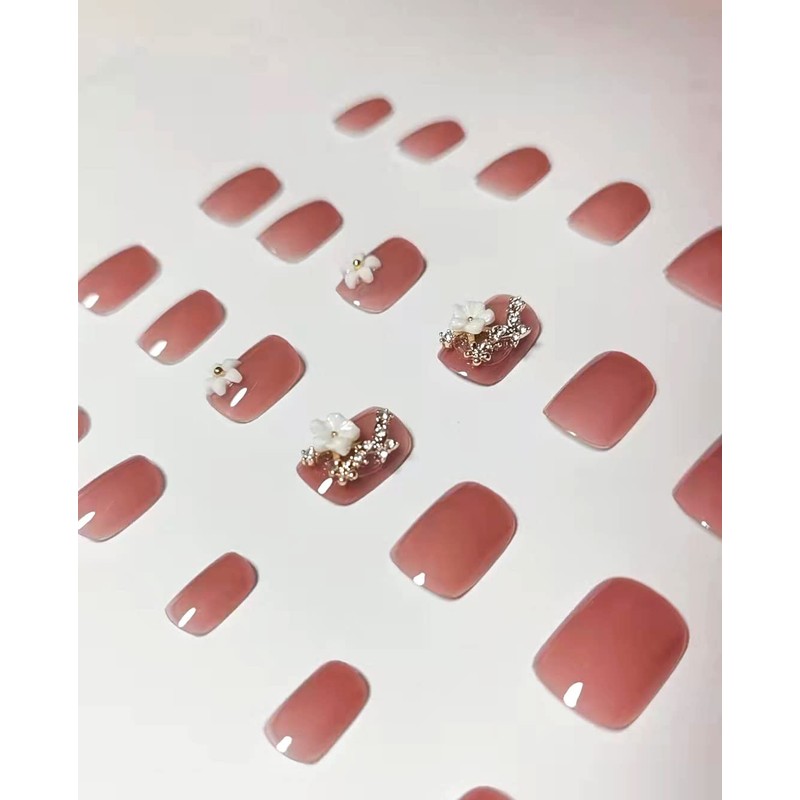 Set of 24 nail tips, with a delicate 3D flower, for a mature and cute look. Designed to be stylish even if it is short