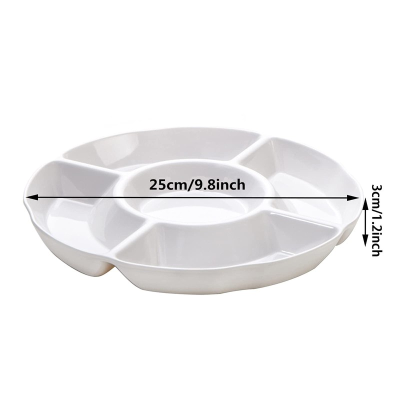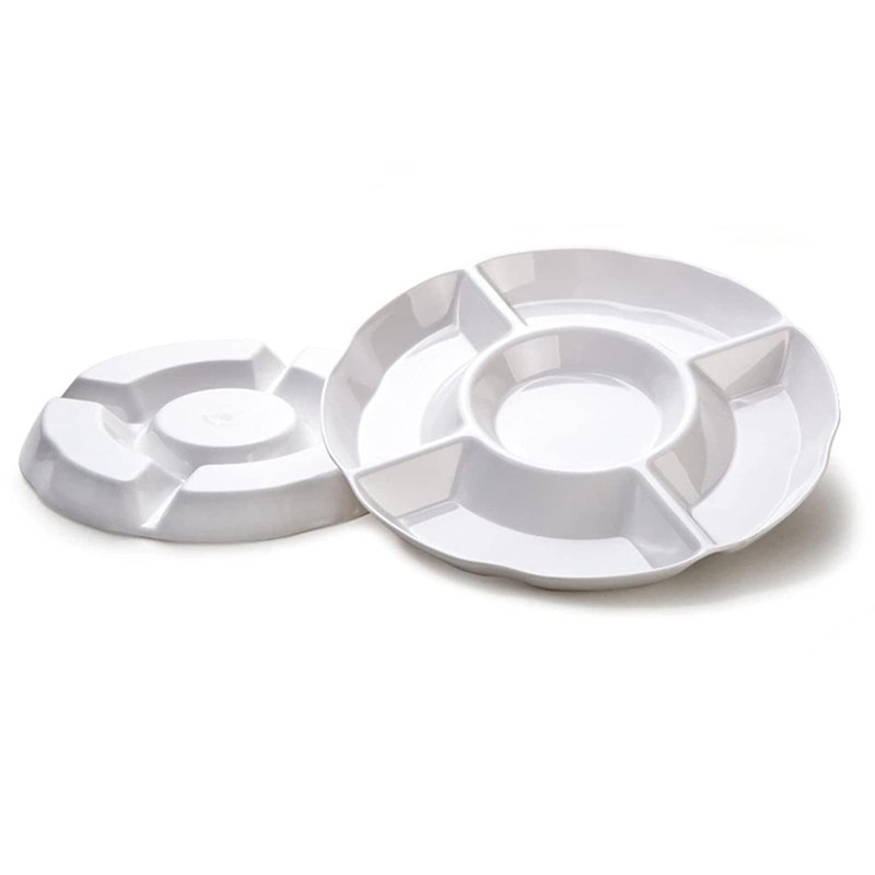 Set of 2Pcs 10 inch Melamine Serving Tray with 5 Compartments, Divided Serving Platter for Appetizer, Snack, Veggie, Fruits (White)