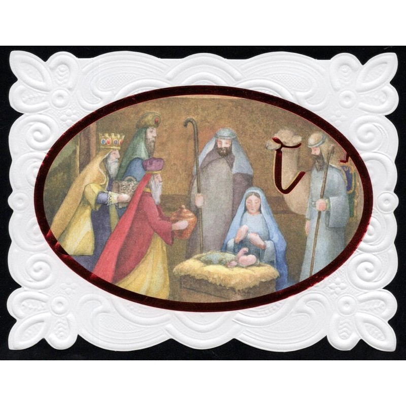 Set of 3 - Christmas Holiday Manger Scene Portfolio Boxed Note Cards by Carol Wilson. 10 embossed 4x5 Die-Cut Notecards and Matching Envelopes in Decorative Gift Box with Magnetic Flap. NCPX2605