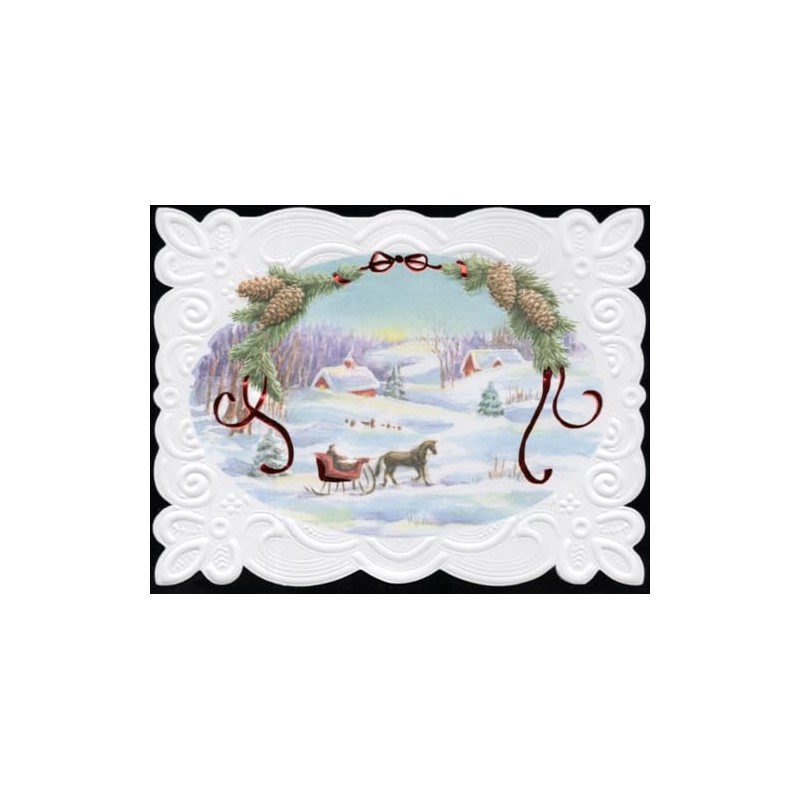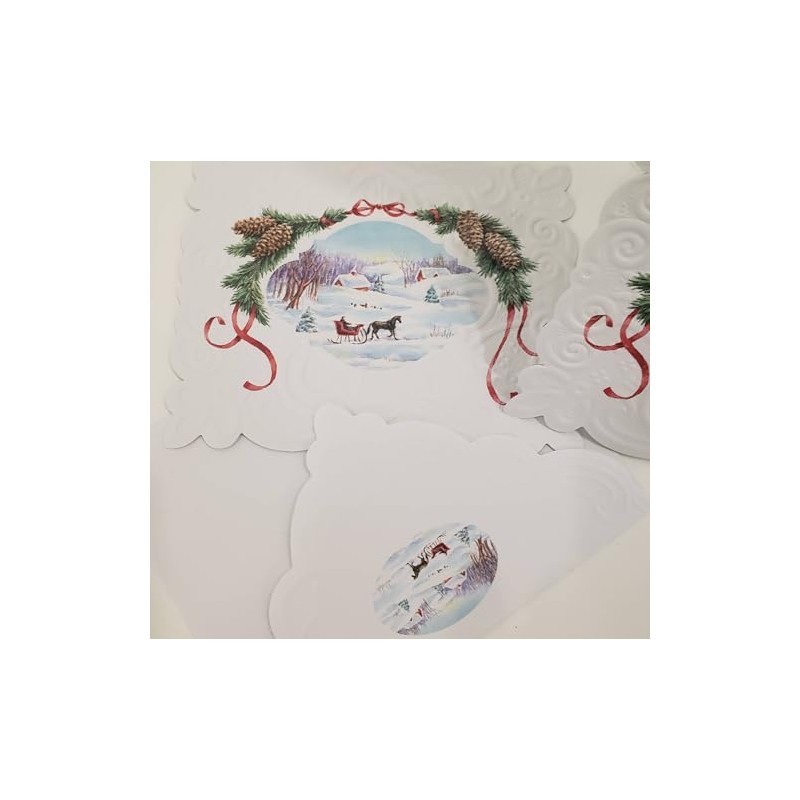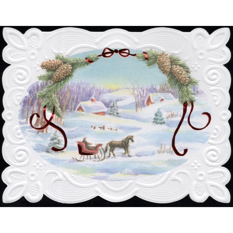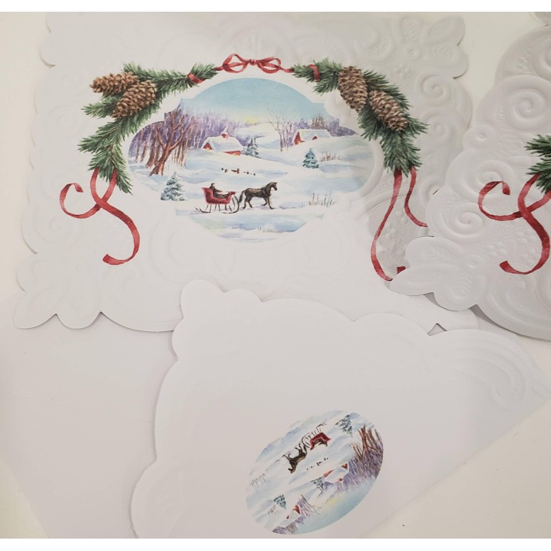 Set of 3 - Christmas Holiday Sleigh Ride Snow Portfolio Boxed Note Cards by Carol Wilson. 10 embossed 4x5 Die-Cut Notecards and Matching Envelopes in Decorative Gift Box with Magnetic Flap. NCPX2603