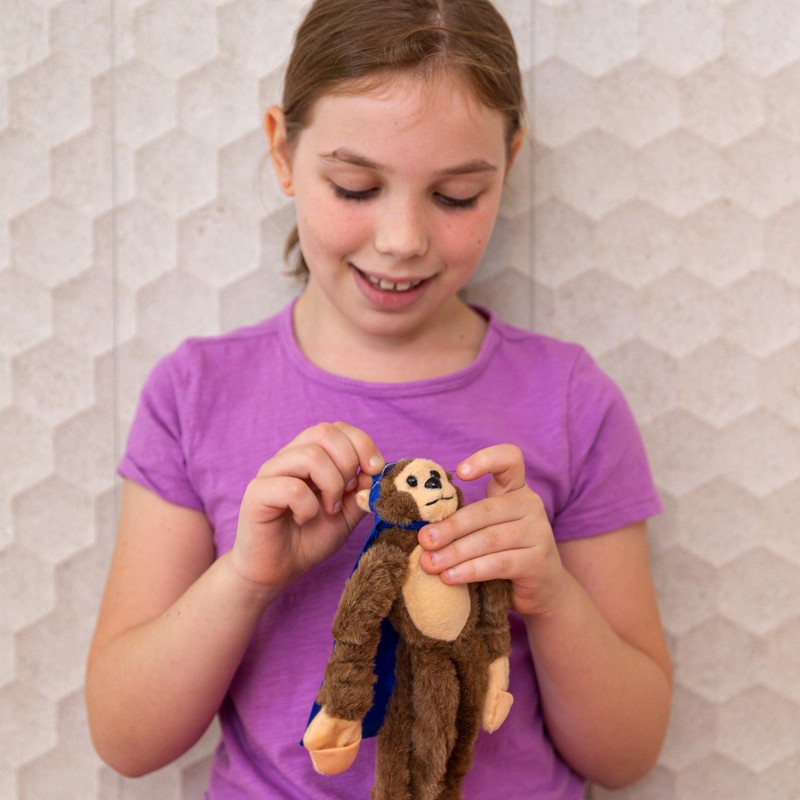 - SLINGSHOT FROM YOUR FINGERS: Flying through the skies has never been more fun! Each monkey is built with a stretchy band made into the arms. Simply place your finger in the pocket of the stretchy hands and use your other hand to pull the monkey back, aim, and release! Your monkey will let you know if the flight was successful by letting out a victory screech