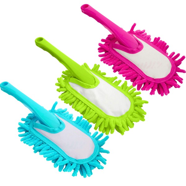 - [Microfibre Duster] – 3 Pcs Microfiber Noodle Duster attracts dust & dirt like a magnet without scratching surfaces – Ideal for Home, Kitchen, Desk, Office, Car etc. Available in 3 colours – Pink, Blue and Green.