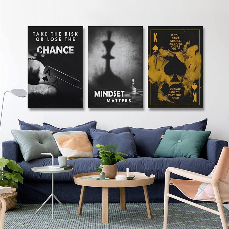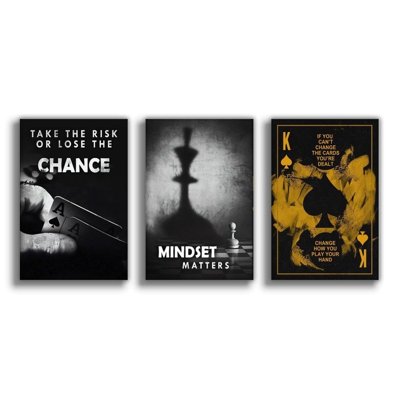 Set of 3 inspirational Wall art, Chalkboard motivational Wall art,Classroom Teens Bedroom Office,TAKE THE RISKOR LOSE THE,MINDSET Unframed 8x12in