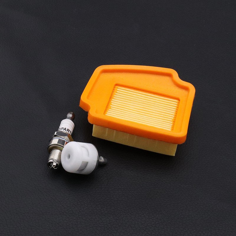 Set of 3 Lawn Mower Air Filter Fuel Filter Spark Glow Plug Kit 4149 141 0300 0000 350 3503 CMR5H Compatible with Stihl SP92C SP92TC KM94R
