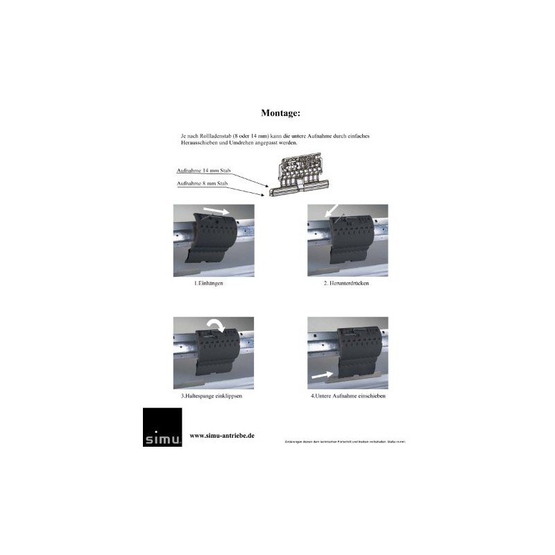 - Suitable for almost all roller shutter profiles from Mini-Maxi (adjustable on the shaft connector).