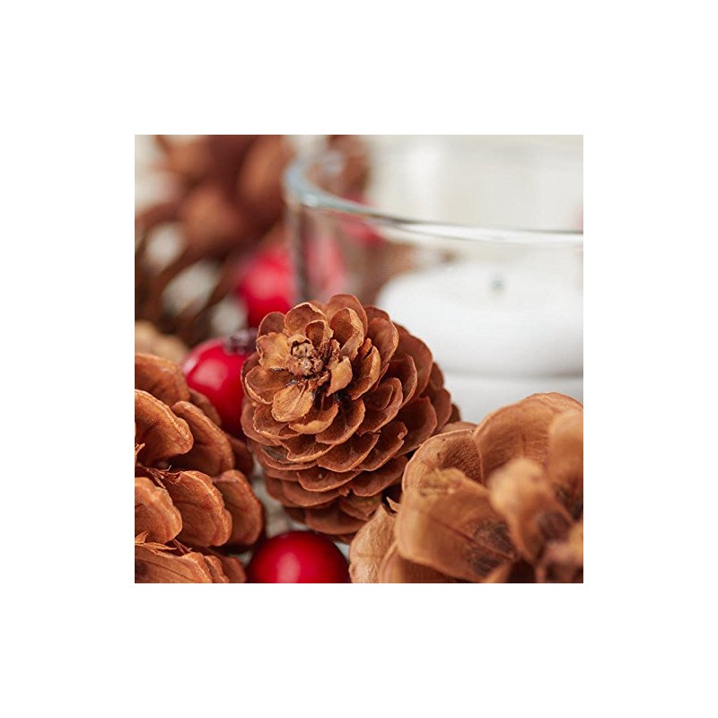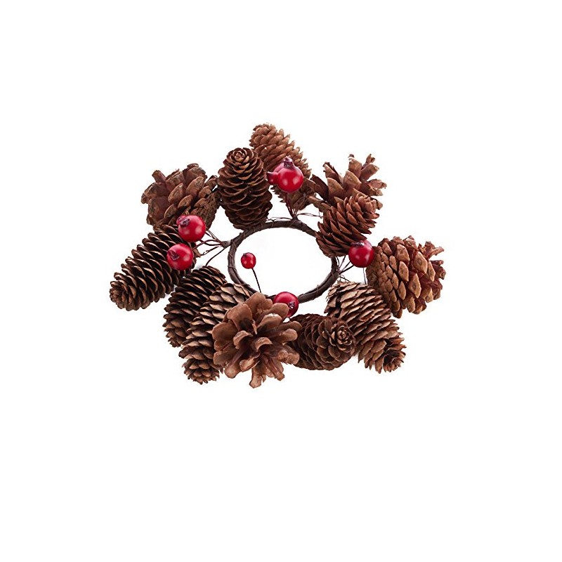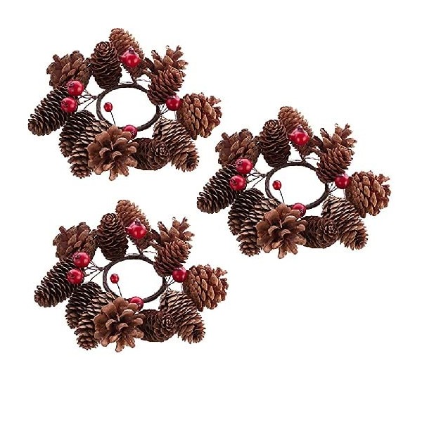 - Set of 3 Natural Pinecone and Artificial Winterberry Berry Candle Rings for seasonal charm in candle displays