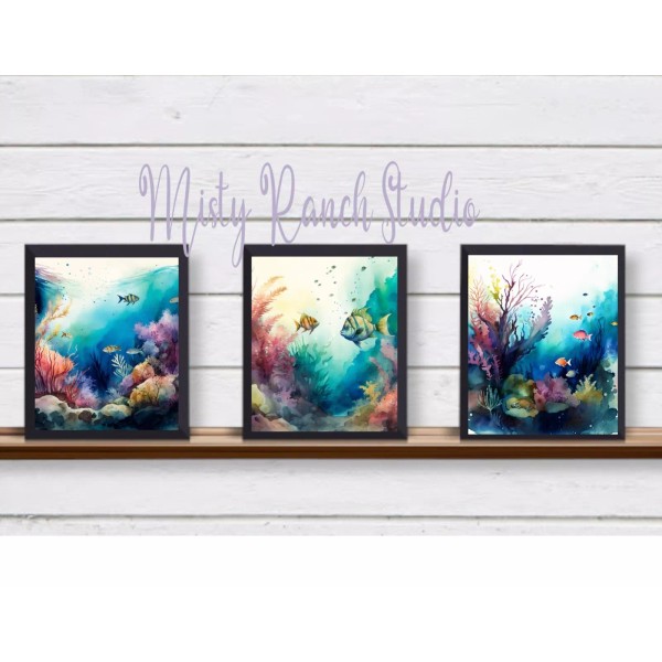 Set of 3 Ocean Sea Reef UNFRAMED Wall Art Prints Ocean for Bathroom, Beach House