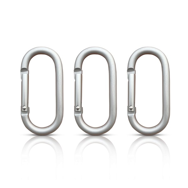 Set of 3 Oval Carabiners, Key Chains, Aluminium Carabiner Hook, Carabiner Set, Small Carabiner Hook, Black, Key Organiser, Carabiner (Silver 66 x 30