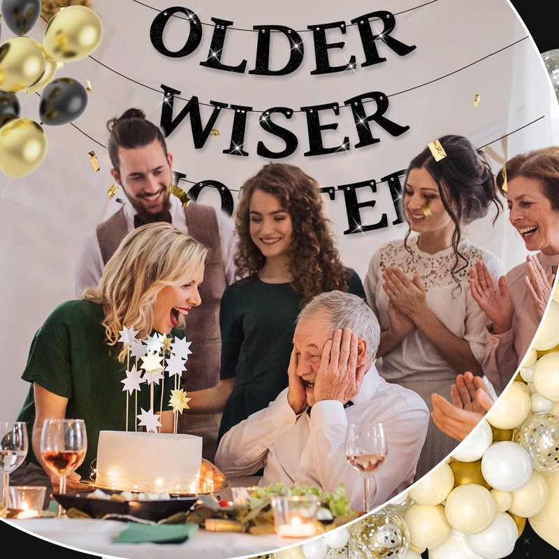 - Fun Design: You will receive a charming banner with "Older Wiser Hotter" letters in black glitter, use our banners to add beauty, create a good atmosphere, stand out, bring you laughter and leave guests with unforgettable memories