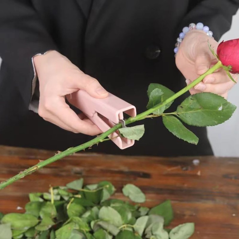 - Instruction: Place the rose stem in the middle of a plastic rose stripper or metal thorn remover and move it from top to bottom to easily remove thorns and leaves.