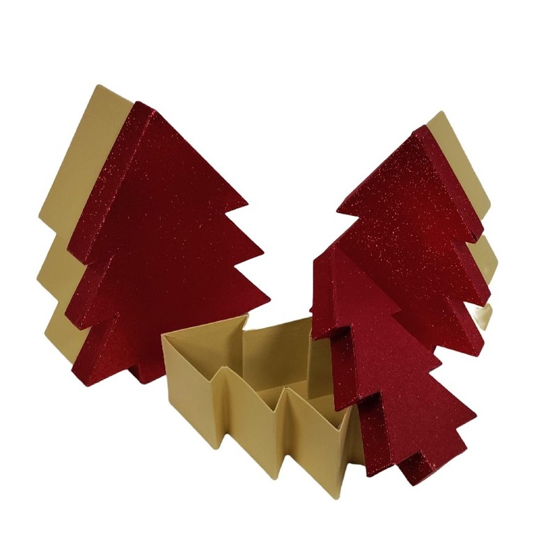 Set Of 3 Red Glitter Christmas Tree Shaoe Gift Boxes Nestable Stacking Xmas Eve Gift Boxes