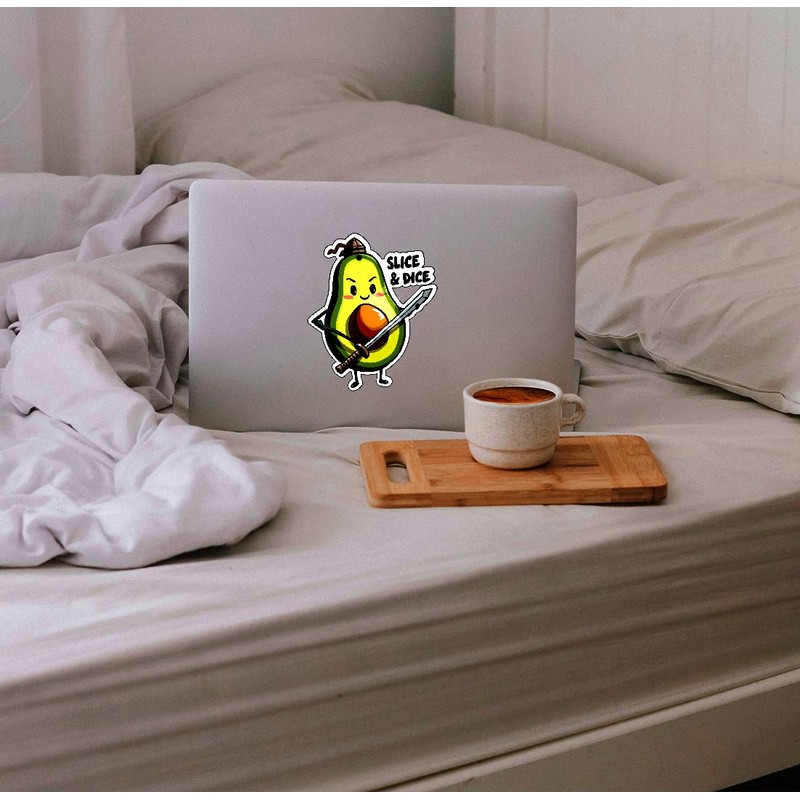 Set of 3 - Slice & Dice Avocado Warrior Vinyl Decal Sticker, Funny Food Character Design,SUV, Van, Window, Bumper, Wall, Laptop, Tablet, Cup,Tumbler Or Any Smooth Surface