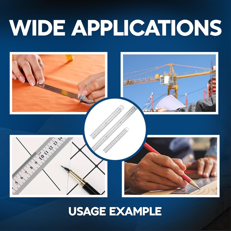 - Complete Ruler Set: Includes 3 metal rulers: 6 inch (150mm), 8 inch (200mm), and 12 inch (300mm) to suit a variety of measuring tasks at home, school, or in the workshop.