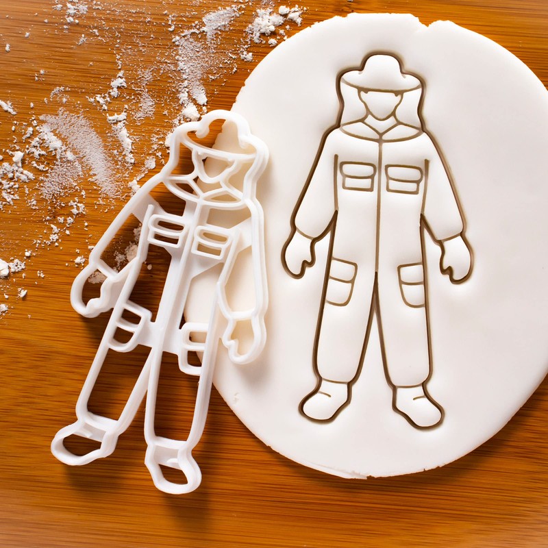 - Beekeeper suit cookie cutter size: 6.5 cm by 12.5 cm (2.5 inches by 4.9 inches)