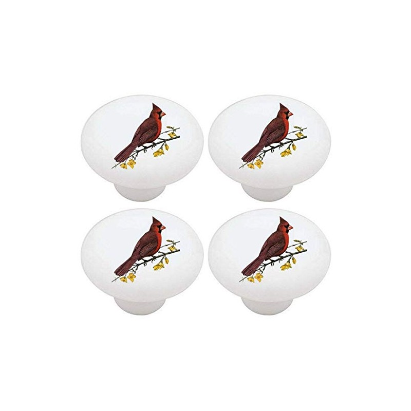 SET OF 4 CARDINAL BIRD DESIGN #1058 - Cardinals - DECORATIVE Glossy CERAMIC Drawer PULL Dresser KNOB