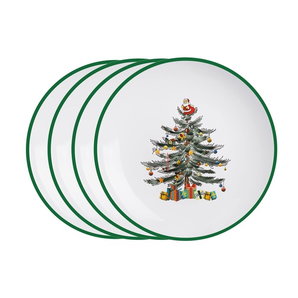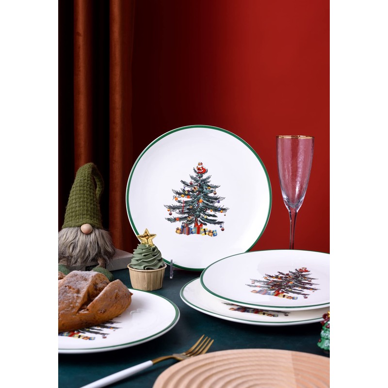 Set of 4 Christmas Dinner Plates Set, Christmas Tree Plates Set with Green Edge, Christmas Porcelain Plates Set for Christmas Porcelain Plate Set of 4 for Christmas Xmas 10.5 Inch