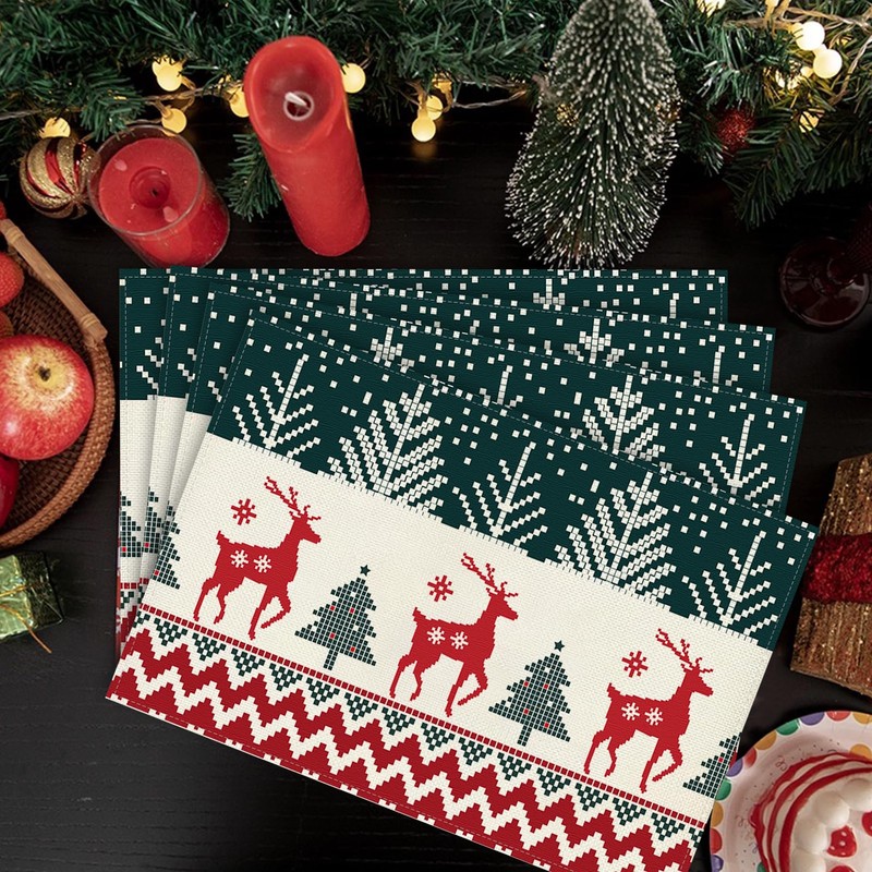 • Christmas table decoration: the Christmas place mat with pixel style red green Christmas tree reindeer linen design improves the Christmas atmosphere. The Christmas place mats are perfect for Christmas parties, winter parties and New Year's Eve parties and offer your family a unique dining experience.