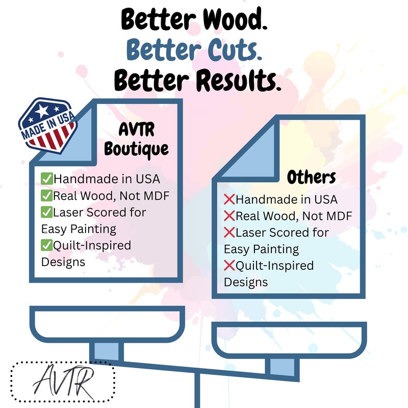 - Ready To Decorate - Wood quilts are the perfect addition to your holiday and seasonal decorations, wall décor, door décor, wooden signs, and much more!
