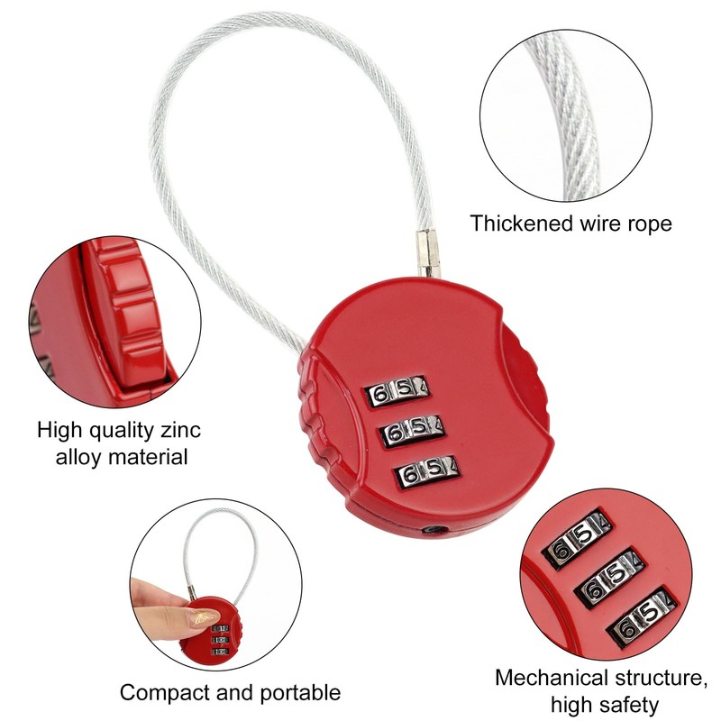 - Wide application: the flexible cable can be passed through all standard zips of suitcases, backpacks, travel bags and briefcases, etc. With a total length of 13.5 cm, the reinforced cable can connect 2-3 sets of zips at the same time to secure the entire suitcase or bag. Ideal as a luggage lock for travel or locker lock for gym, school, drawers, toolbox, locker etc.