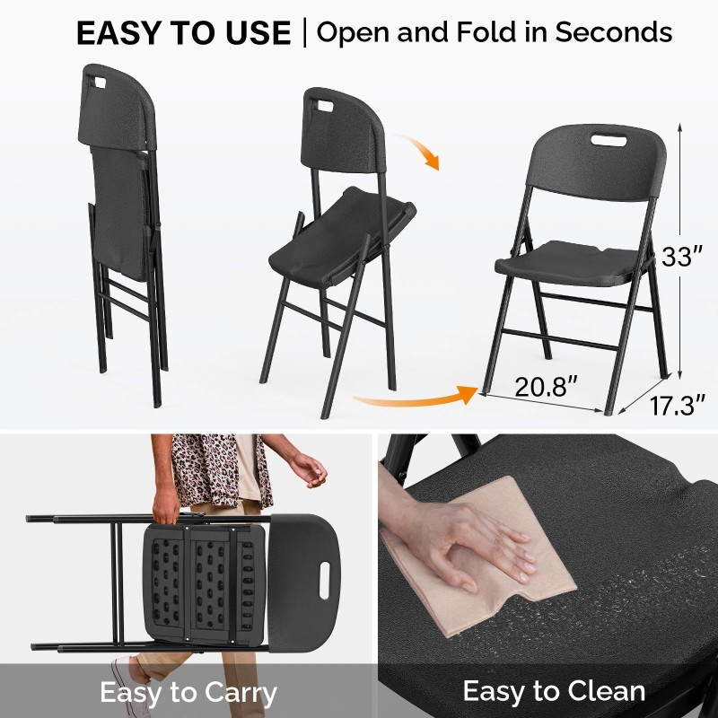 Set of 4 Commercial Folding Chair Seat Event Set for Outdoor Garden Black