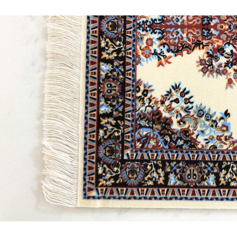 - Made with Care: The top of each rug is a velvet-style fabric with a high quality print of an Oriental and Turkish rug design. This gives the carpet a very soft and authentic look. The white fringes on each end make these minis realistic and fun.