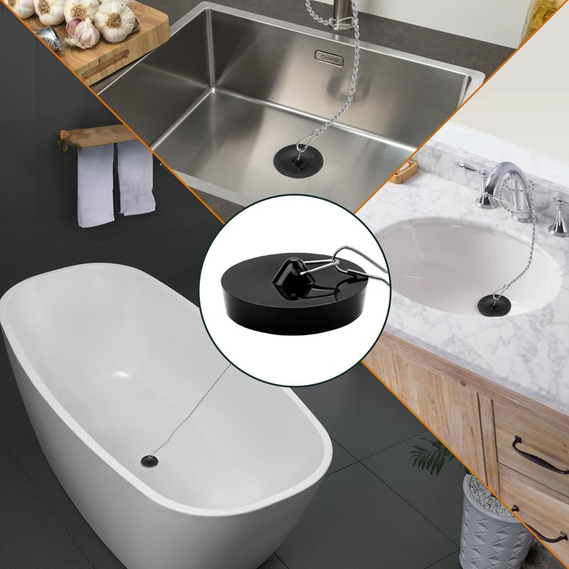 - Good sealing: this sink plug prevents dishes and other unwanted items from falling into the drain and keeps the water back in the bath or sink. The bath plug consists of a black water plug, which is not easily affected by dirt. In addition, the drain plugs in bathrooms and kitchens cannot be easily lost as they are equipped with a stopper chain ring.