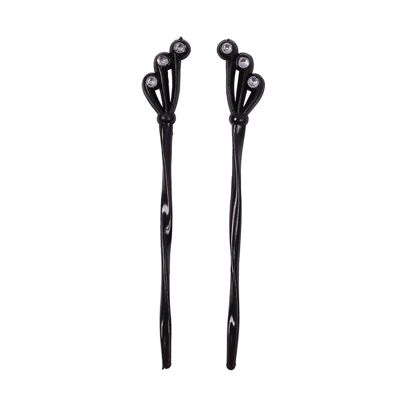 Set of 4 Elegant Design with 3 Diamonds Hair Sticks - Black & Tortoise