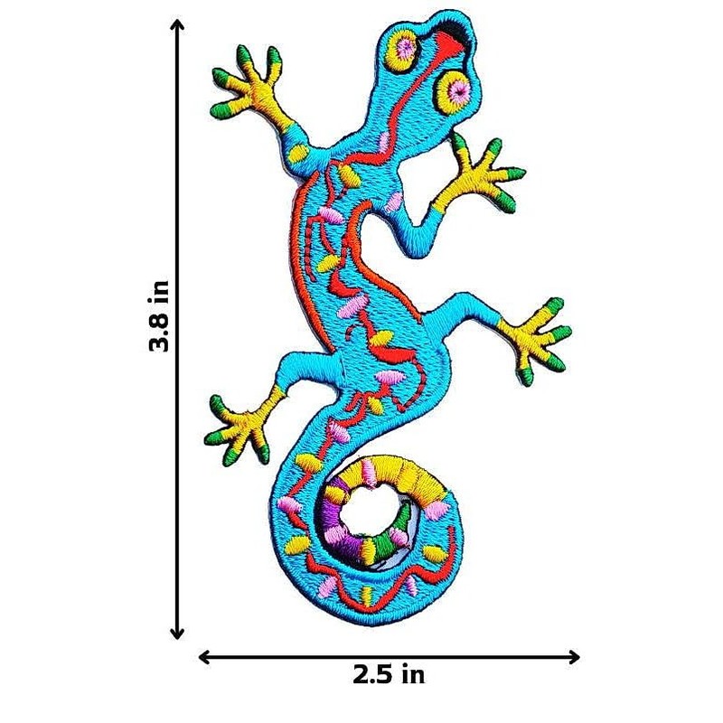 Set of 4, Gecko Embroidered Iron on Patches Lizard Patches Chameleon Patches