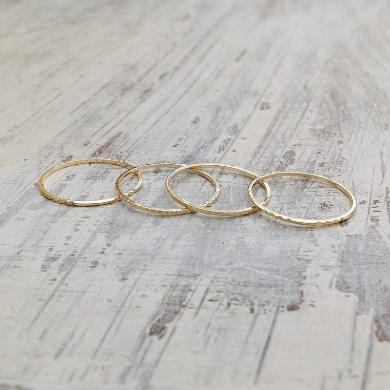 Set of 4 Gold rings,Stacking rings,knuckle rings,thin ring,tiny ring,size 6.5 US