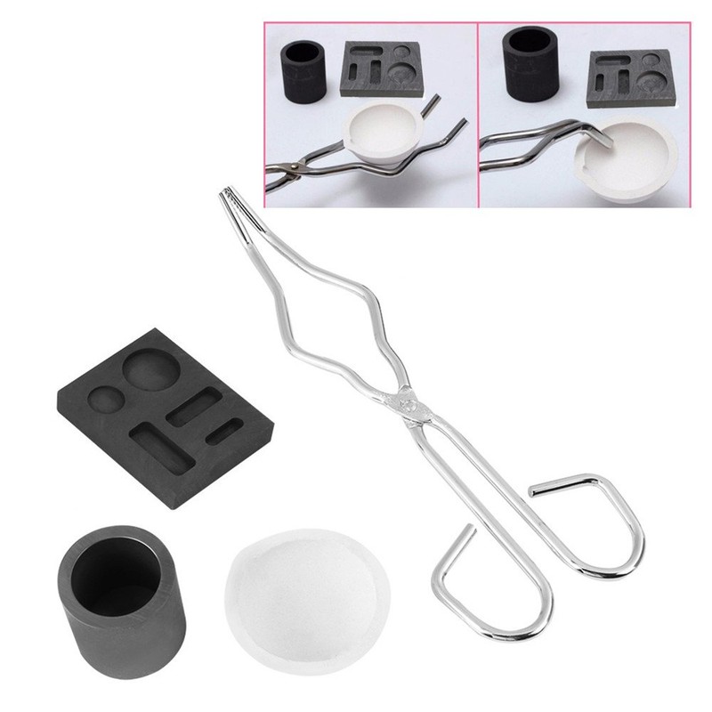 Set of 4 Graphite Crucible Kit, Graphite Melting Pot + Tong + Bowl + Combo Ingot Torch Melting Kit Mould