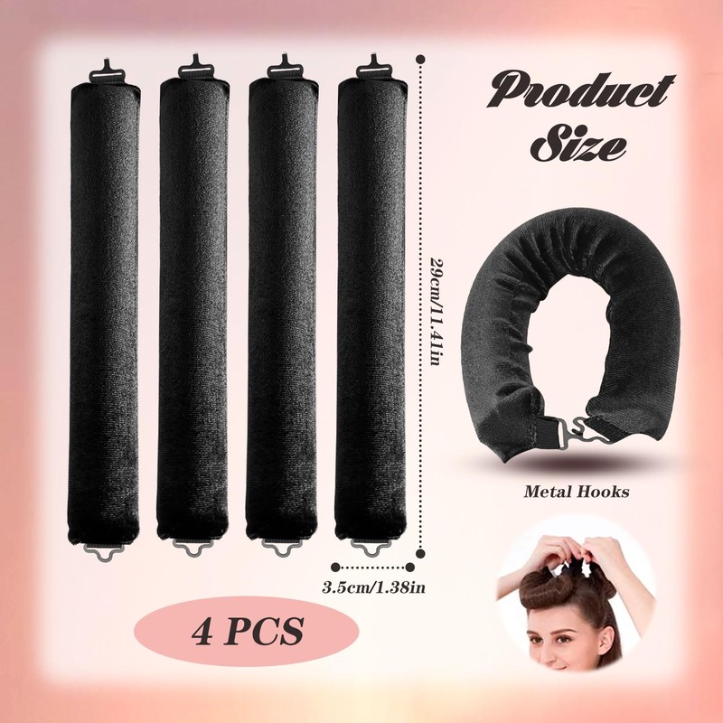 Set of 4 Heatless Curls Band Black Curls Without Heat Non-Slip Overnight Blowout Curlers Night with Hooks Overnight Curls Curling Band Set Heatless Blowout Rods Heatless Curlers